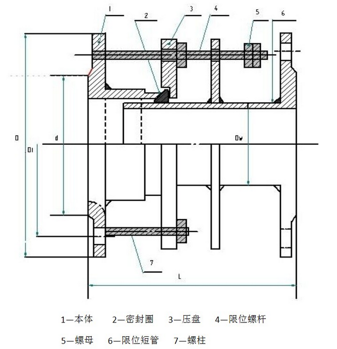 | 公稱 通徑 DN | 管子 外徑 DW | 長度 L | 伸縮量 | 法蘭連接尺寸 | |||||||